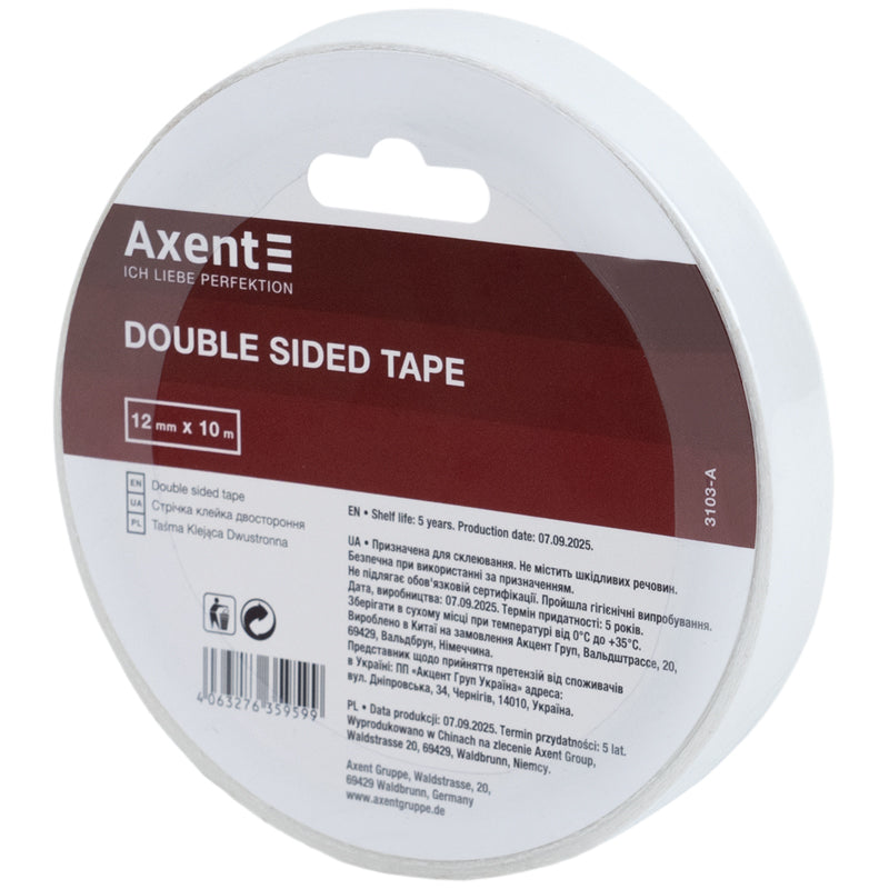 - Стрічка клейка двостороння Axent 3103-A, 12 мм х 10 м, в індивідуальному пакуванні