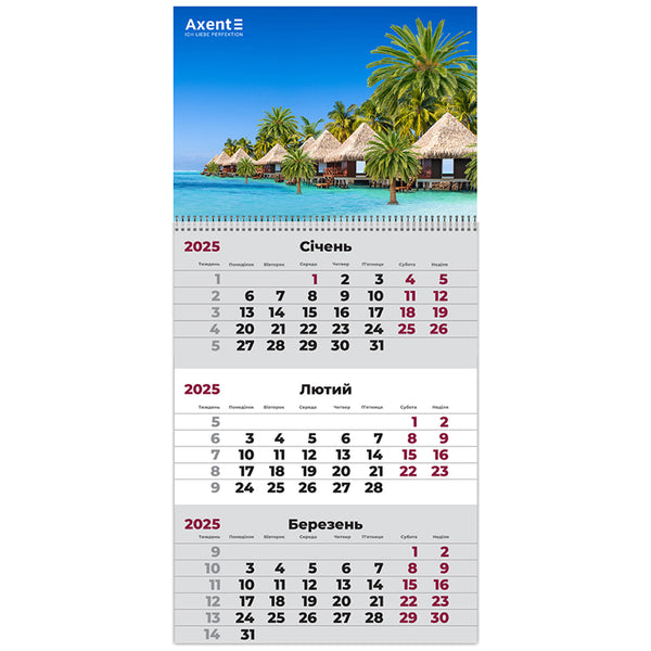 Календар настінний квартальний 2025 Axent Maldives 1 8801-25-1-A, 1 пружина