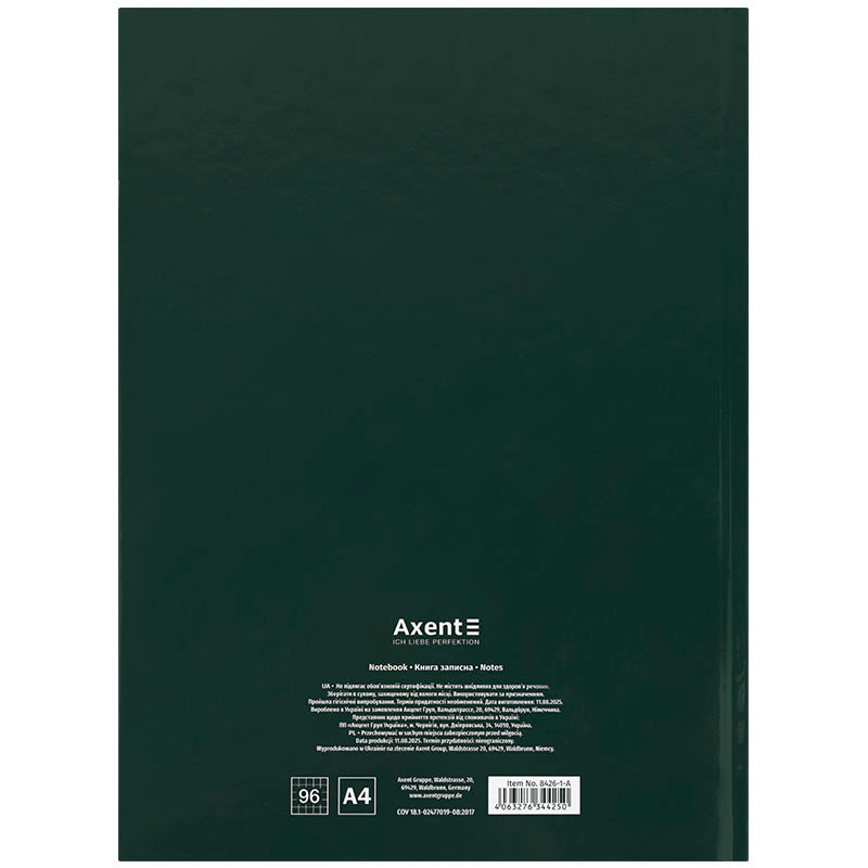 Книга записна Axent One color 8426-1-A, А4- 203*273 мм, 96 аркушів, клітинка, зелена